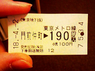 画像はなぜか手元に残った行きの切符。
